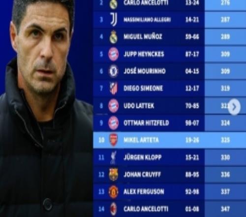 五大联赛单一俱乐部200胜主帅:瓜帅268场最少,塔帅325场第10少