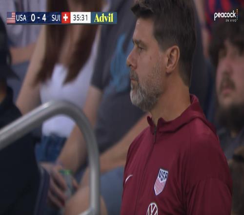 上半场第36分钟,瑞士队已经取得了4-0领先,打崩了美国。场边美国主帅波切蒂诺风中凌乱不知所措。
