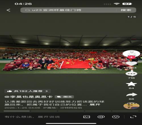 体育播报01月25日宣 U23亚洲杯决赛,国足0-4不敌日本无缘冠军,赛后国足U23门将李昊更新社媒。