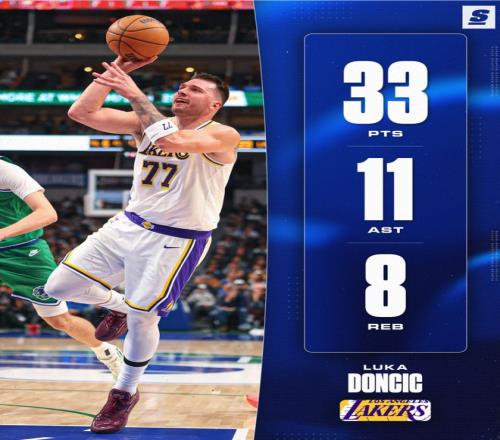 湖人队116-110涉险击败独行侠。这场比赛湖人与独行侠是一场极限拉锯战,湖人领先14分-落后14分只用了15分钟左右,但最后的8分钟里湖人打出27-6的攻防浪潮完成逆转,准确的说是5分45秒内湖人就一波流锁定胜局了。东契奇拿到33+11+8是数据最出色的。