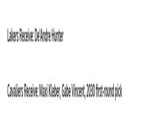 第二笔交易方案则是理想状态中的方案,美媒建议湖人队3换1拿下亨特,具体方案如下:
