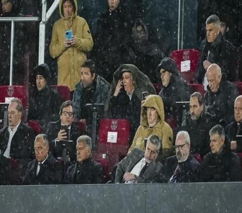 在Spotify诺坎普的看台上,大雨倾盆而下,拉波尔塔身处看台第一排看完了巴萨3-0奥维耶多的整场比赛。在被大雨淋...