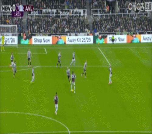 第19分钟,布恩迪亚远射破门,维拉客场1-0领先纽卡