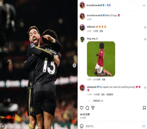 近7轮3球2助攻获队长认可!B费助攻后晒庆祝合照:金球多尔古!