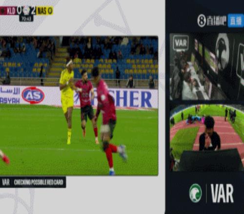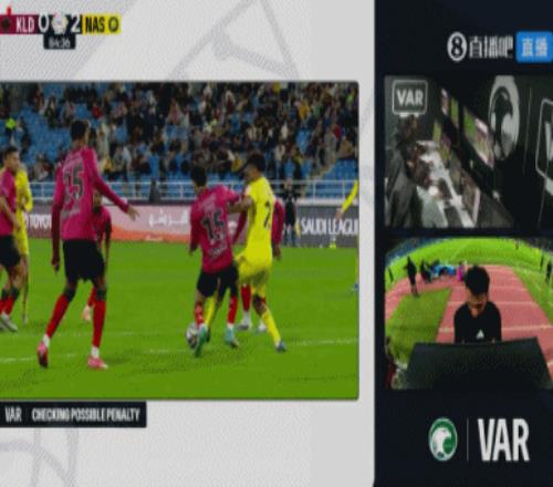 第87分钟,索兰禁区内踢倒科曼,主裁判观看VAR后判罚点球,利雅得胜利获得点球,科曼亲自操刀主罚命中,拉斯永恒0-3利雅得胜利。↓